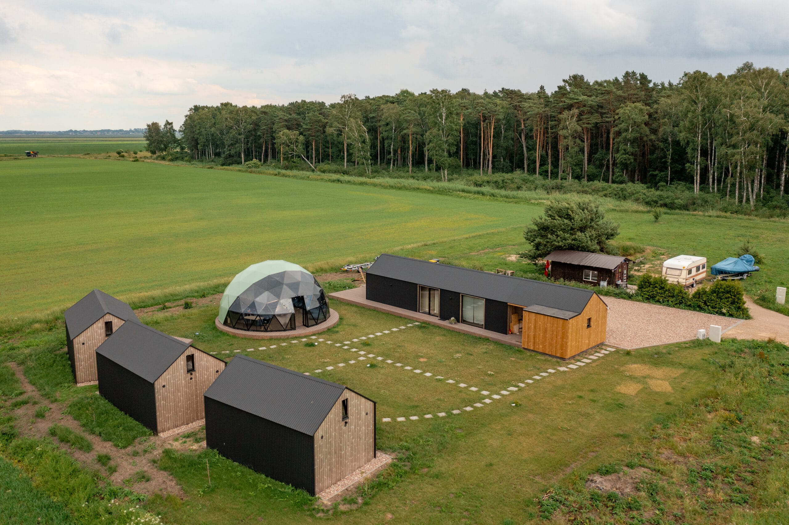 Kompaktiški ir estetiški poilsiniai moduliniai nameliai, pritaikyti tiek poilsiui gamtoje, tiek šiuolaikiškam gyvenimui. Aukštos kokybės medžiagos, modernus dizainas ir harmonija su aplinka – idealus sprendimas ieškantiems praktiškumo ir patogumo.